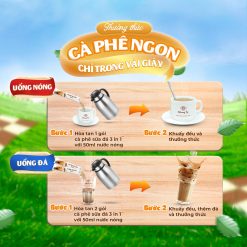 – Uống nóng: Hòa tan 1 gói cà phê sữa đá 3 in 1 với 50ml nước nóng, khuấy đều và thưởng thức.